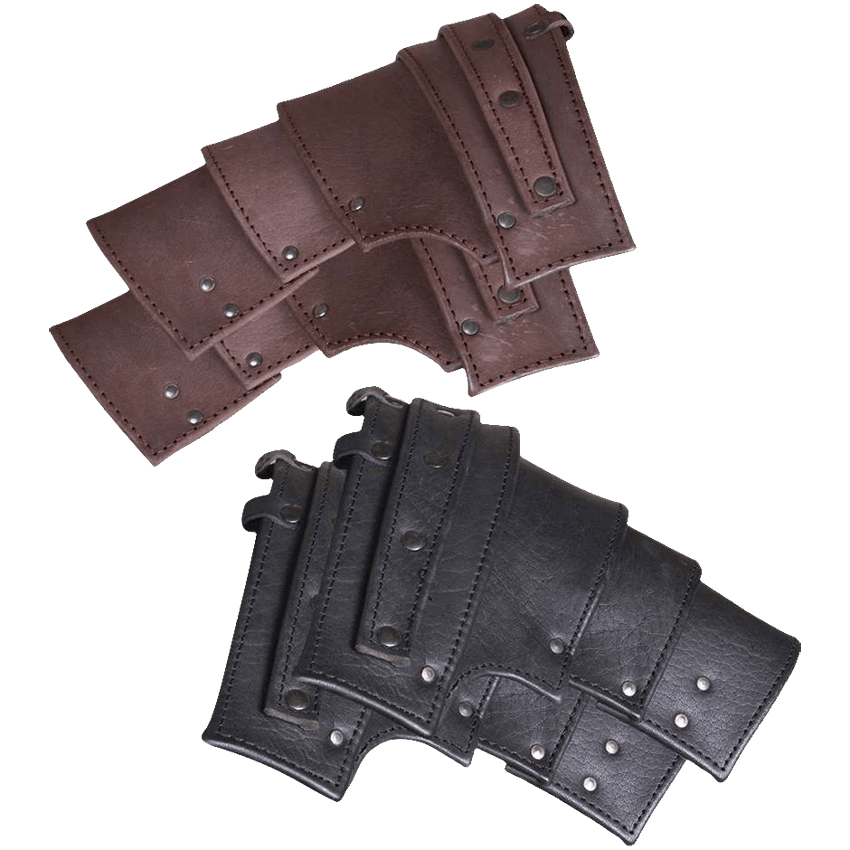 For additional protection and an authentic look, add the Albrecht Spaulders to your medieval reenactment or LARP armour sets. The layered construction and fine leather material make this a must-have for fans of light armour. These armour pieces are securely fastened with buckles at the shoulders and upper part of the arm, and look stunning as part of any historic ensemble, especially accompanied by other pieces in the Albrecht leather armour line.
