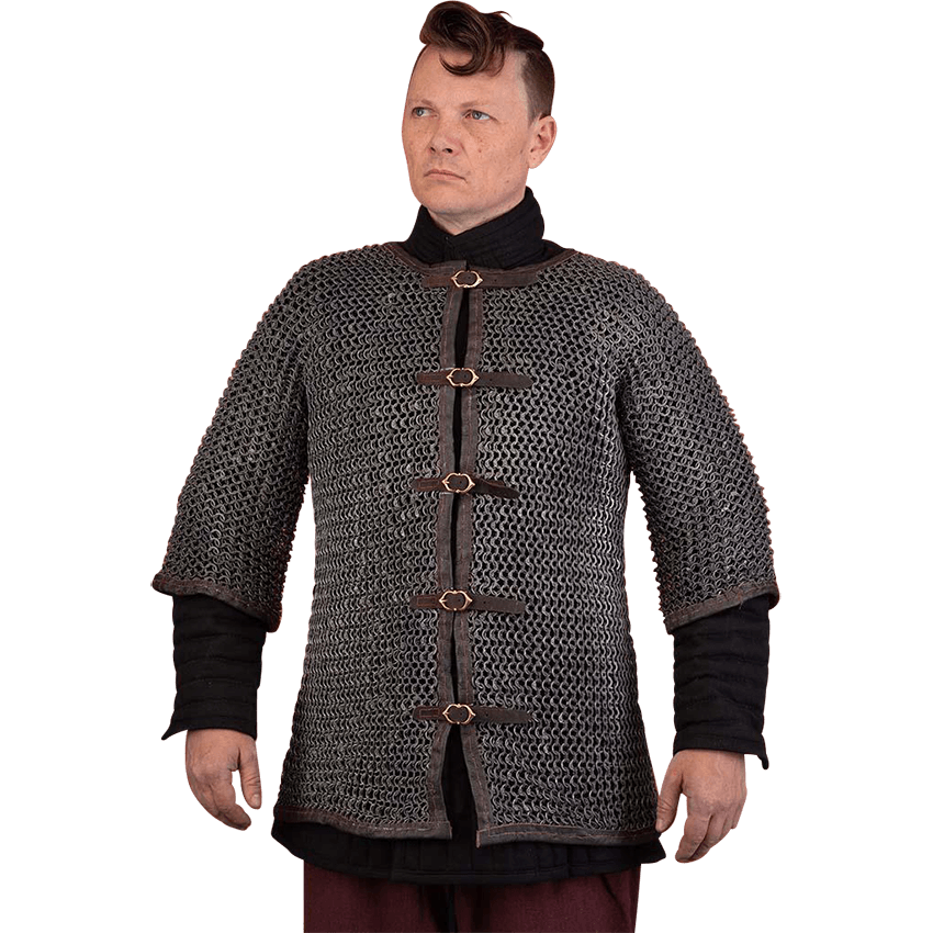 Whether you’re a chivalrous knight from high medieval kingdoms or a fantasy character who loves mail, the Buckled Aluminum Chainmail Haubergeon is perfect for you. Embark on a new adventure with this haubergeon keeping you protected.