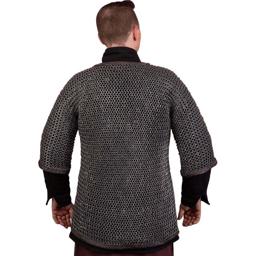 This aluminum chainmail armor is available in a wide variety of sizes. Please check the Size Chart for sizing details. For comfort, we recommend wearing a shirt or padded arming wear like a gambeson underneath this hauberk.