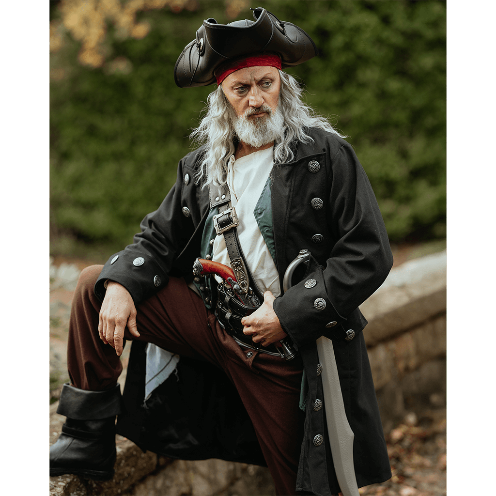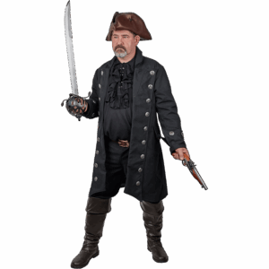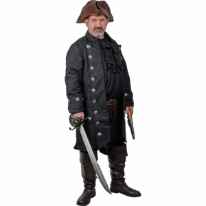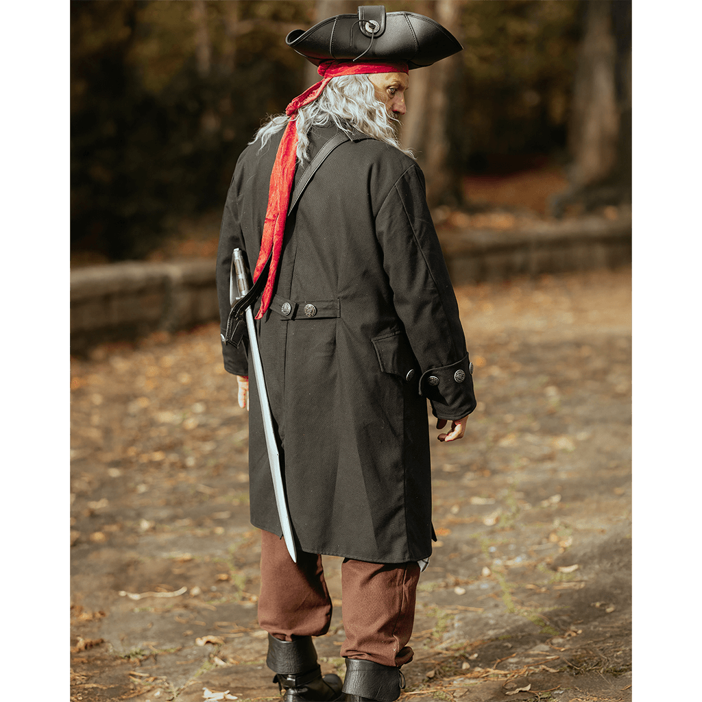 Make your pirate costume party something worthy of epic sea shanties when you don this epic pirate jacket. The long historical coat is perfect for Captain Jack costumes, pirate costumes, first mate costumes, and more. The quality and durability of the woven cotton canvas makes it a must-have for Pirate Day at the Renaissance fair. It would even help you cut a fine swashbuckling figure at historical reenactments, whether dressing as a pirate or any other colonial or seafaring character.