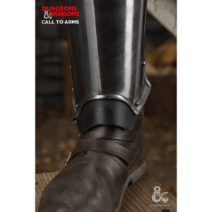Noble knights, ruthless sellswords, and legendary adventurers alike can wear these D&D steel greaves and experience their versatility firsthand. Wearing them is easy, simply buckle the straps behind your leg and adjust for a snug fit. They can layer easily over leg wraps, pants, and chausses for historical detail. If you’re looking to add some extra knee protection, then the two eyelets at the top are perfect for tying knee poleyns to them.