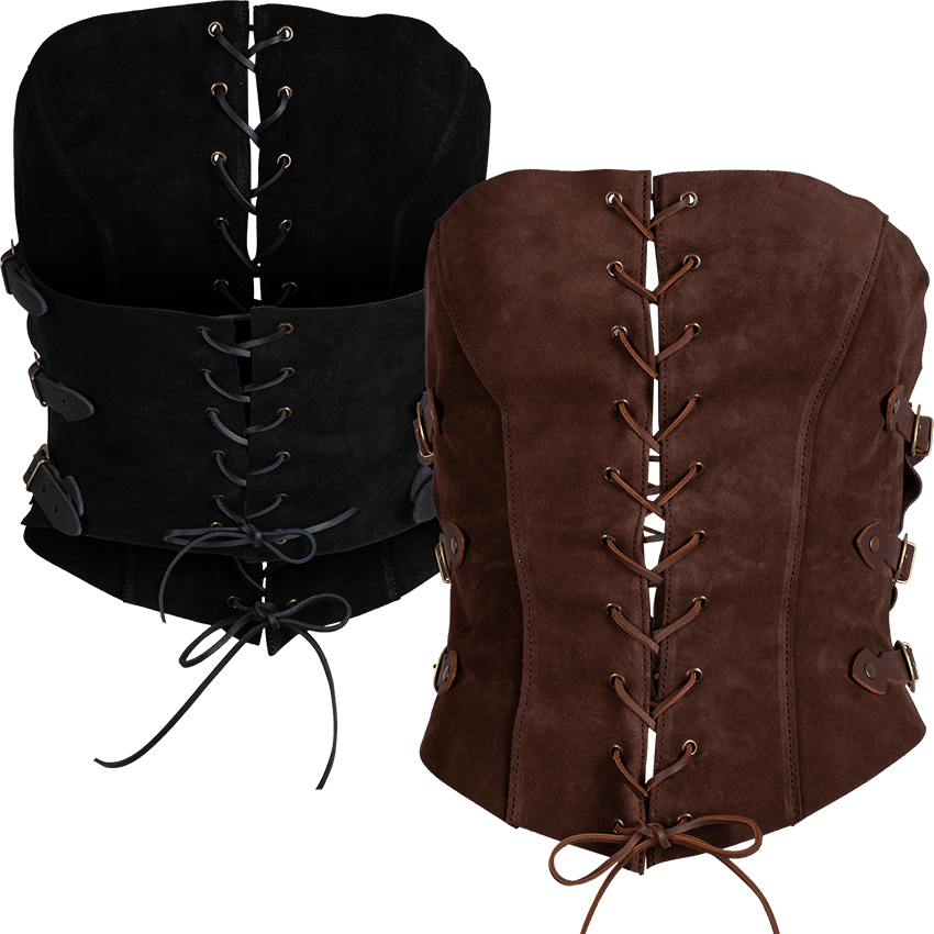 Choose between two colors: Black and Brown, to complement your outfit. Available in multiple sizes, this Mytholon suede corset accommodates a wide variety of body types. This ensures everyone feels like they belong in medieval times.