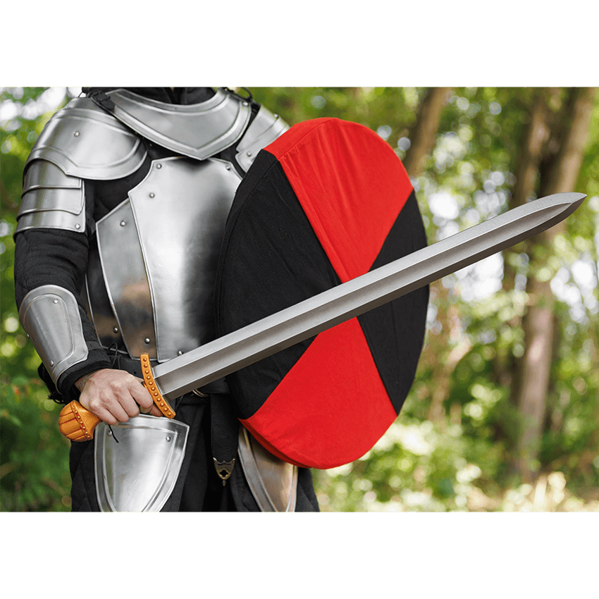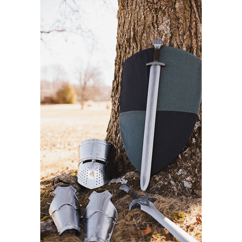 You have come a long way to conquer this land, crossing cold and stormy seas in an uncovered longboat. It would be a shame if your weapon failed you now. Luckily, the Fidas LARP Longsword is sure to defend you without waver. This historically themed LARP weapon is made from a specially designed latex-free, injection-molded foam with a strong fiberglass core. This core makes it particularly durable while still remaining safe for LARPing, theater, and staged events. It also features a protective coating that increases its durability and prolongs the life of the weapon. This weapon is modeled after classic Viking longswords, complete with a deep fuller, a short crossguard, and a five-lobed pommel. The hilt comes in gold or steel coloration and is wrapped in leather, making gripping easy. The Fidas LARP Longsword is a crucial arm for any Viking or barbarian warrior to have, and it is sure to bring a bit of authenticity to your next LARPing event.