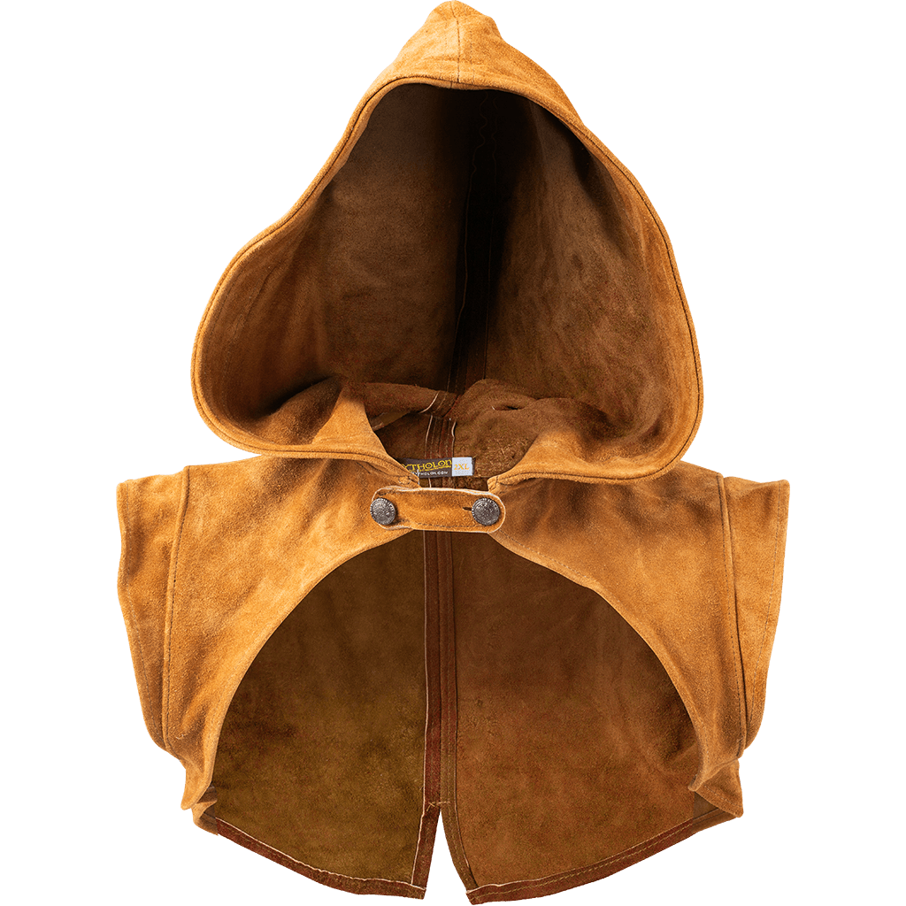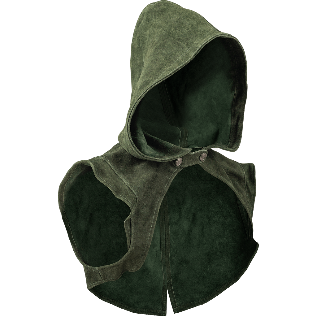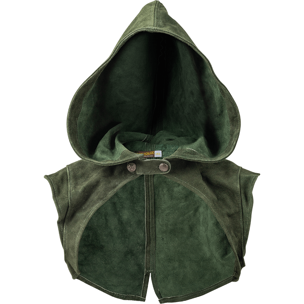 Embark on a new adventure with this medieval fantasy leather hood adorning your ensemble. This medieval hood is ideal for LARP characters who embrace the spirit of adventure. The elegant suede design makes it great for elves and other fantasy-inspired characters making their mark in another world. Rangers, rogues, mercenaries, and more characters will love wearing this suede leather bolero hood. With a variety of sizes and colors available, this medieval fantasy hood complements all kinds of characters making their way through the realms.