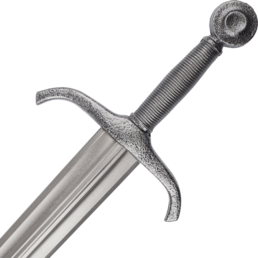 Crafted from polyurethane foam, this Mytholon sword is designed for epic LARP combat. A fiberglass core in the center makes it a strong and flexible weapon. The latex-free foam construction ensures you can enjoy the thrill of combat for years to come. This medieval LARP short sword’s length gives you the advantage of speed and maneuverability in battle. This Mytholon short sword has a stunning appearance. The beveled wheel-shaped pommel is steely grey. Like the pommel, the faux wire-wrapped handle is also steely grey. Moving onto the stunning crossguard, it’s steely grey like the pommel and it curls toward the blade. Down the length, the silvery double-edged blade has a narrow double fuller.