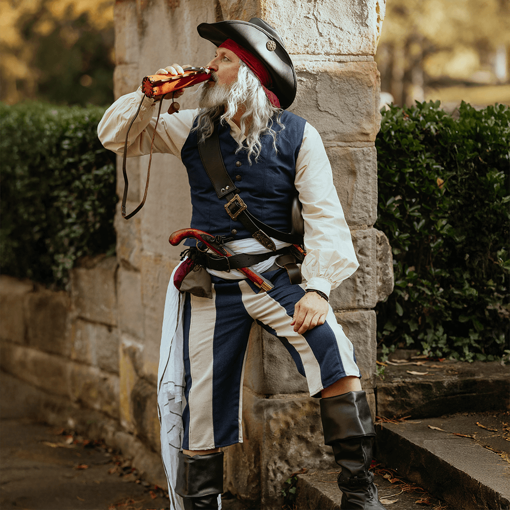 Embark on a thrilling adventure on the Seven Seas with the Jack Canvas Pirate Pants, a vital piece of your historical costume. This period garment takes inspiration from the fashion trends of 17th century seamen. The pants are handmade from a robust cotton canvas. The rougher weave not only increases its durability, but also enhances the authentic look and feel. The striped, two-toned trousers reach to approximately the knees. Cotton tie strings allow you to adjust the fit at the waist. While the Jack Pirate Pants are designed with history in mind, side pockets are built-in for easy concealment of treasure and everyday carry items.