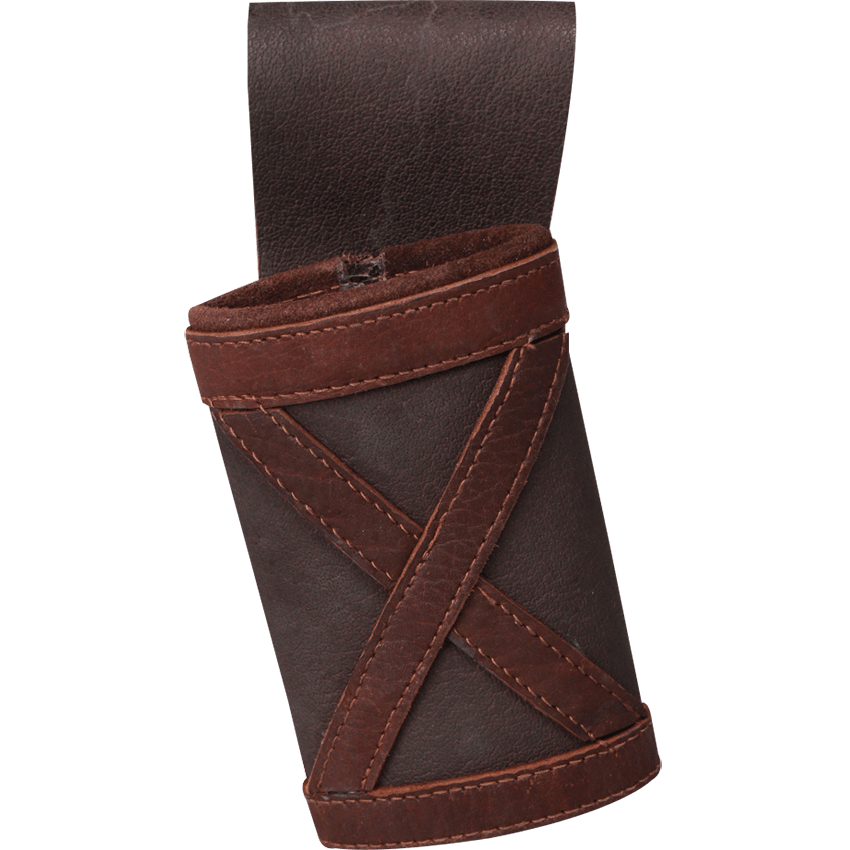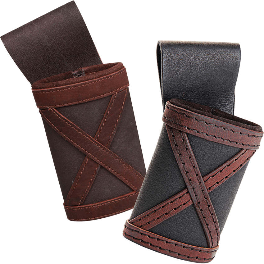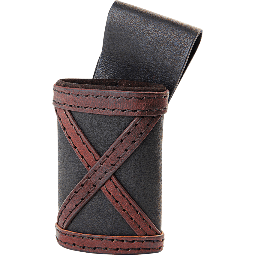 Your sword guides you. Your sword protects you. And it is awesome. Why would you hold it in a run-of-the-mill sword frog? Show your LARP weapon the respect it deserves when you hang it at your hip from the stylish Leon LARP Sword Frog. This leather holster is designed to perfectly fit a LARP sword, and its soft interior means that it can do so without scratching or scuffing the foam. The front of the frog depicts a stitched leather X, making it ideal for Vikings or decorated knights. Its large belt loop allows it to be hung from a variety of belts, granting you the ability to customize your look. Even better for its customizability is the fact that it comes in two colors – brown with a black X pattern and black with a brown X pattern. The sword frog also comes in left and right, meaning that you can get one for either side of your body. The Leon LARP Sword Frog makes a fantastic functional accessory for any medieval warrior.