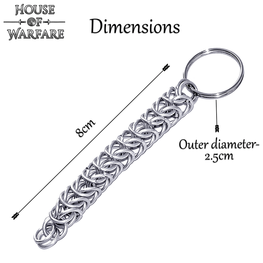 Keep a piece of chainmail with you wherever you go with the Woven Chainmail Keychain. This galvanized steel keychain is not only great for keeping your keys together, but also for accessorizing your bags and zipper pulls. The galvanized steel rings are rust resistant, and they are woven Persian weave style into a long chain, with a key ring on one end. Show off your interest in chainmail or medieval armour when you accessorize your gear using this chainmail keychain.