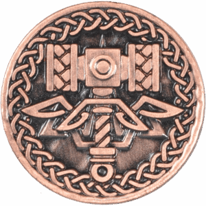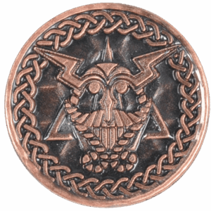 No matter what realm your adventure takes place in, you are sure to fare better with the right currency on hand. Invoke the power of a Norse warrior when you add the Set of 10 Copper Viking LARP Coins to LARP or tabletop gameplay. Made from galvanized zinc and nickel, these round, copper tone coins have an antique finish for immersive authenticity. Each identical coin is intricately decorated on both of its sides, with the front featuring an elaborate Celtic knotwork-inspired warhammer and the back displaying a stylized Viking head. Celtic knotwork encircles each of these designs. Step up your fantasy gaming with this set of Viking-inspired currency, or incorporate these fascinating coins into Viking-themed displays and coin collections.
