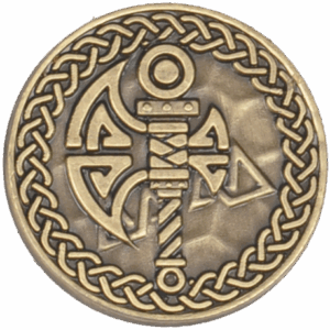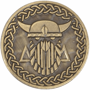 A battleaxe may certainly be a powerful tool of persuasion, but a handful of gold coins is often just as powerful. Take the Set of 10 Gold Viking LARP Coins along on your next Viking raid for immersive LARP or tabletop gameplay. Inspired by the fearsome Norse warriors of old, these fantasy coins are decorated with bold designs. Each identical, circular coin in the set features a stylized axe on one side and the stylized head of a bearded Viking warrior on the reverse, the designs on both sides bordered by Celtic knotwork. Made of high-quality galvanized zinc and nickel, these gold tone coins have been given an antique finish for extra authenticity. Whether you stock your gaming treasury with these fantasy currency pieces or display them as unique additions to your coin collection, their Viking-inspired designs are sure to impress any fan of Norse history and myth.