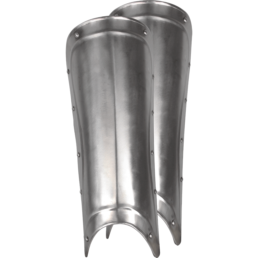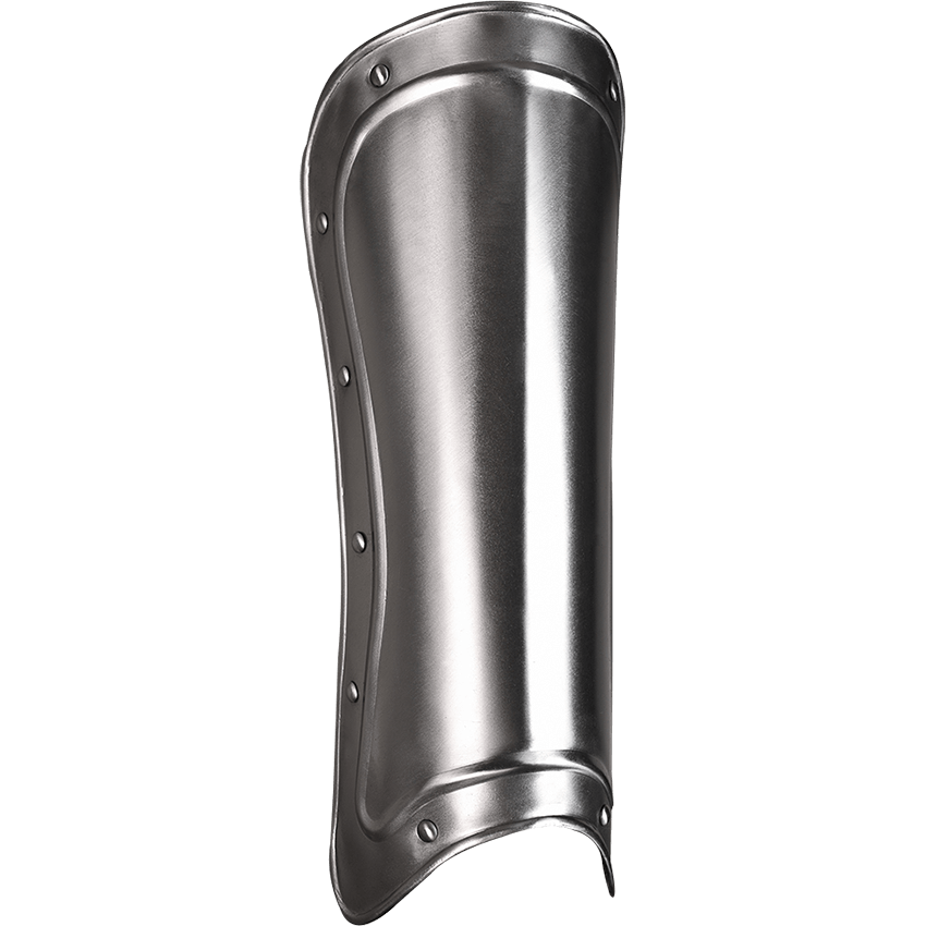 Add both protection and style to your LARP ensemble with the help of the Steel Georg Greaves. These fantastic steel greaves cover your shins while displaying fine detail with corrugated edges and rivets along the ridge. The bright metal finish on the metal greaves ensures that they go well with other pieces of medieval armour for LARPing and re-enactments and are especially suited to knight and champion characters. A pair of straps fasten over the backside of the calf to secure the leg armour in place. We recommend wearing padded arming wear with this steel plate armour for increased comfort.