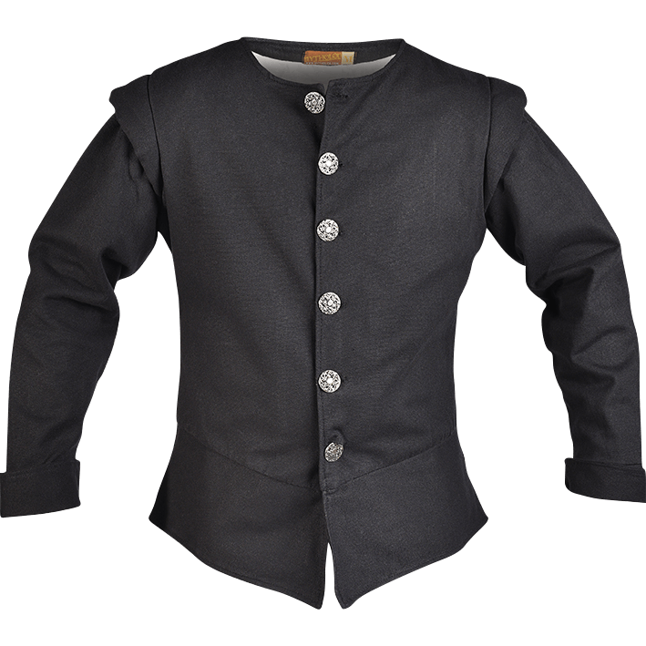 In the Renaissance, there was a variety of professions. Wear the Tilly Canvas Jerkin for whatever character you choose, from a merchant to a noble. The black jerkin comes in a range of sizes. These neutral colors work for different classes and roles in society. A cotton lining adds comfort to this canvas jerkin. Wear the long, cuffed sleeves rolled up or down, according to your character. Decorative buttons close the jacket shut from the neck until just above the waist. This jacket is a wonderful outer garment for LARP events and fantasy conventions.