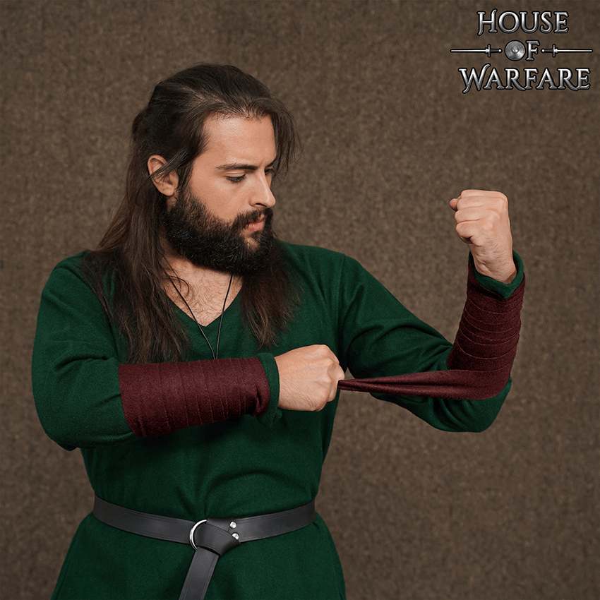 Indulge in the essence of the Vikings with our exquisite Woolen Arm Wraps adorned with elegant brooches, crafted in a captivating shade of dark red. Inspired by authentic Viking designs, these arm wraps are a must-have for any historical reenactment or cosplay enthusiast.